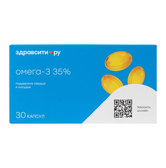 Биологически активная добавка к пище «Омега-3, 35%» под торговой маркой «Здравсити.ру» произведена ООО «Полярис» в России. Образец приобретен в магазине «Ригла» по адресу: г. Москва, ул. Вавилова, д. 3.