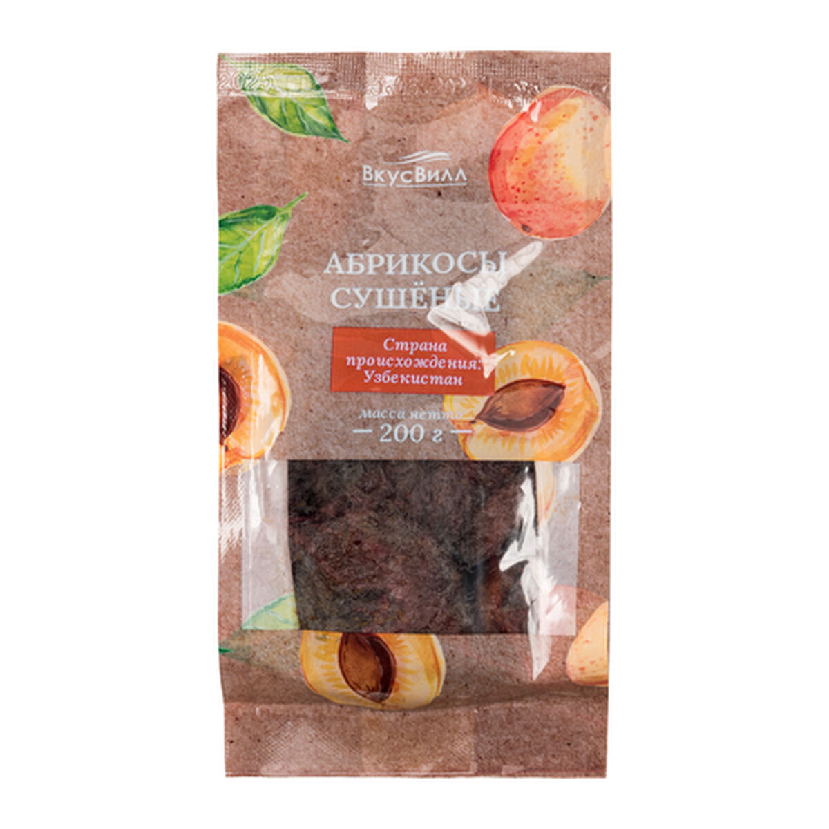 Фрукты сушеные: абрикос сушеный (кайса), под торговой маркой «ВкусВилл» произведены ООО «Мануфактура Вкус жизни» в России. Образец приобретен в интернет-магазине «ВкусВилл».