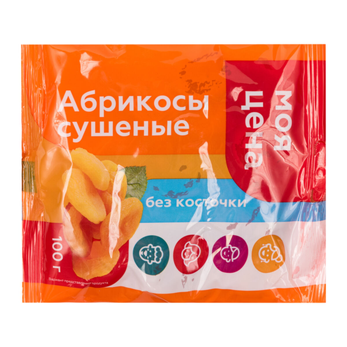 Фрукты сушеные фасованные: абрикос без косточки, под торговой маркой «Моя цена» произведены ООО «ТК «ЗАРД» для АО «Тандер» в России. Образец приобретен в магазине «Магнит» по адресу: г. Балашиха, ул. Твардовского, д. 40.