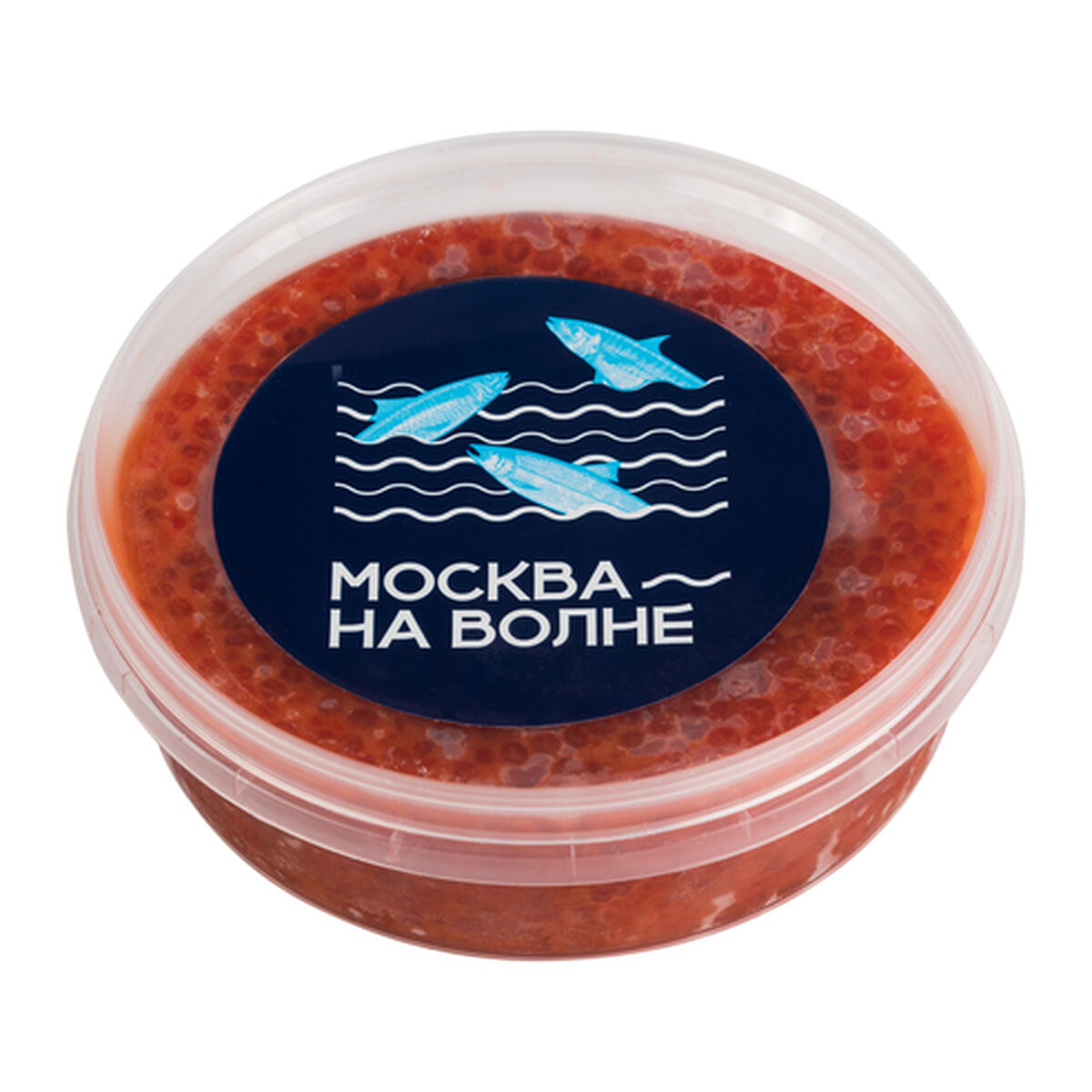 Икра зернистая лососевых видов рыб, соленая, охлажденная: род — лосось тихоокеанский, икра кижуча, под торговой маркой «Москва на волне» произведена ООО «Медиа-Парк» в России. Образец приобретен в магазине «Москва на волне».