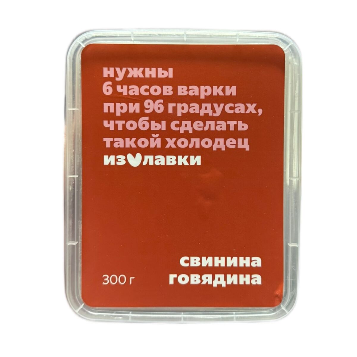 Колбасное изделие мясное из термически обработанных ингредиентов, категории В, холодец «Мясной», под торговой маркой «Из лавки» произведено ООО «Востряково-2» для «Яндекс.Лавки» в России. Образец приобретен в интернет-магазине «Яндекс.Еда».