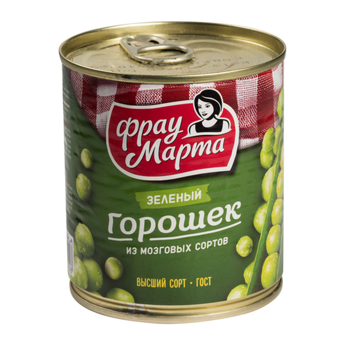 Консервы овощные «Горошек зеленый», высший сорт, под торговой маркой «Фрау Марта» произведены ООО «Промконсервы» в России. Образец приобретен в магазине «Лента» по адресу: г. Балашиха, мкр. Саввино, ул. Пригородная, стр. 90.