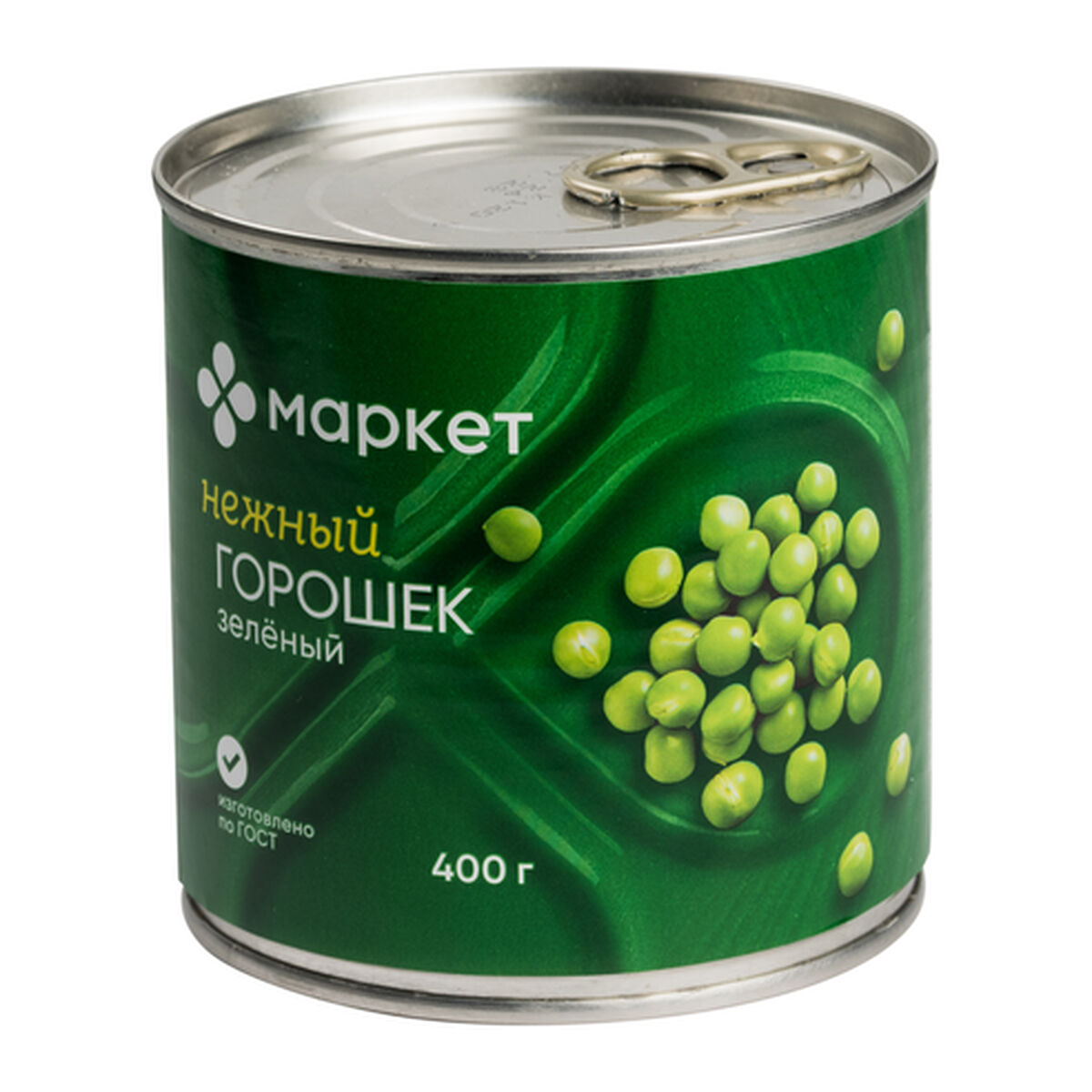 Консервы овощные, «Горошек зеленый», сорт высший, под торговой маркой «Маркет» произведены ООО «Белгородский консервный комбинат» для торговой сети «Перекресток» в России. Образец приобретен в интернет-магазине vprok.ru.