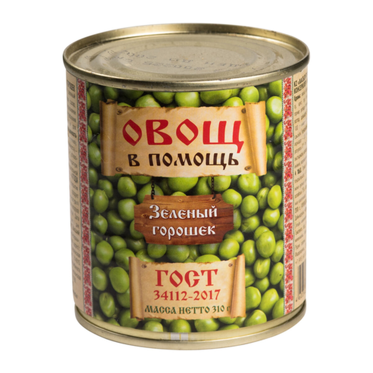 Консервы овощные «Горошек зеленый», высший сорт, под торговой маркой «Овощ в помощь» произведены ООО «Промконсервы» в России. Образец приобретен в интернет-магазине «Яндекс.Маркет».