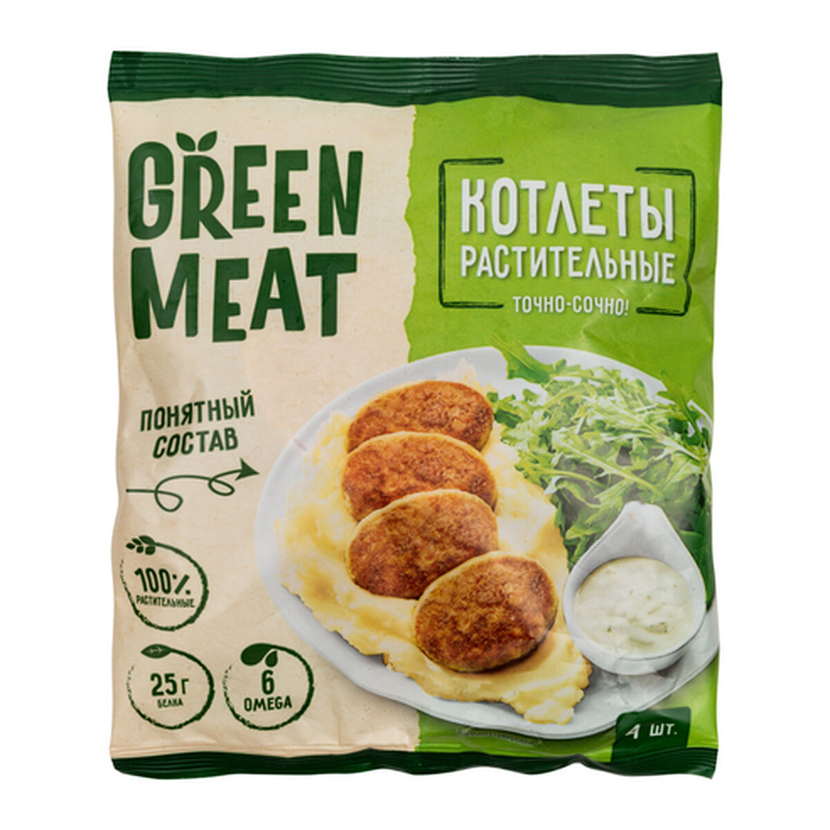 Полуфабрикат замороженный, котлеты растительные, под торговой маркой Green Meat произведен АО «ЭФКО» в России. Образец приобретен в интернет-магазине «Сойка».