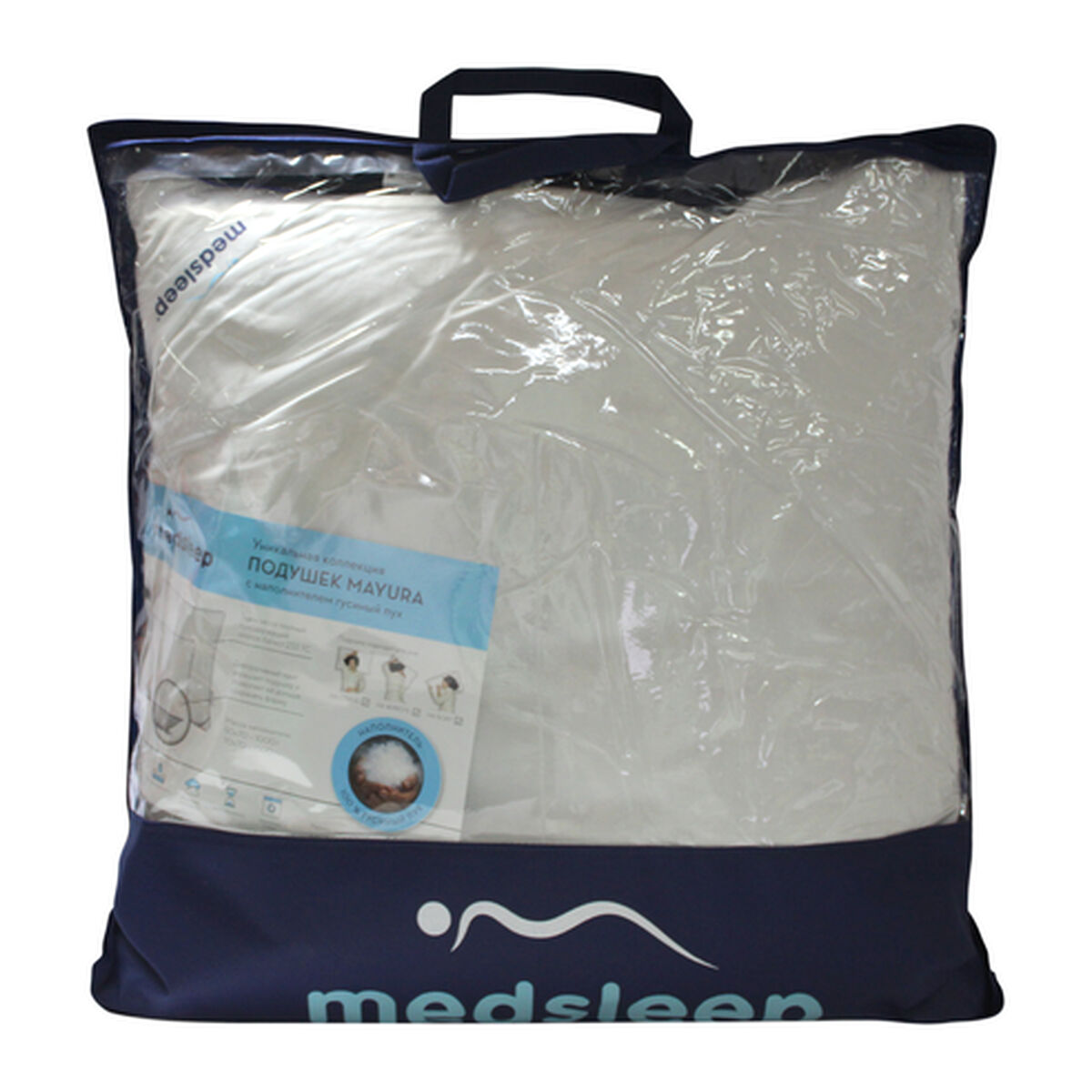 Mayura, подушка, 70*70, 1 пр., под торговой маркой Medsleep произведена ООО «Роял Текстиль» в России. Образец приобретен в интернет-магазине Ozon.