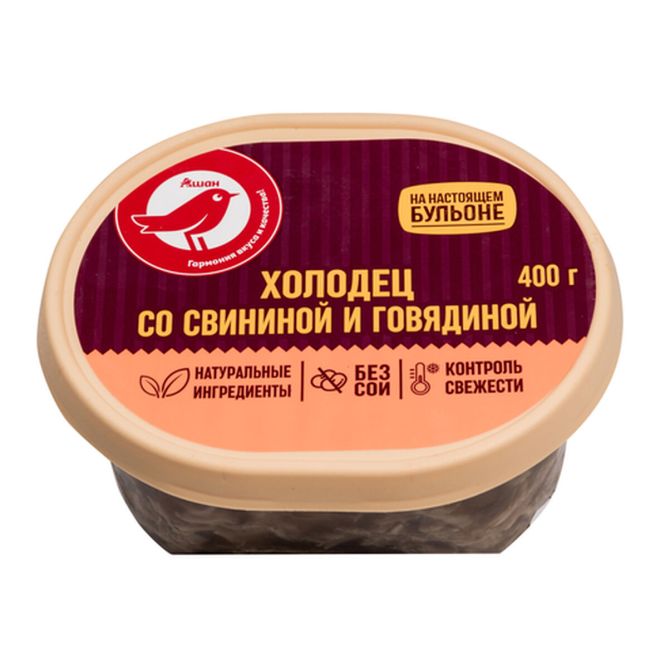 Содержание белка и жира соответствует заявленной в маркировке информации, а также нормативам опережающего стандарта, установленным для мясосодержащей продукции. Холодец не пересоленный — в нем содержится 1,4±0,2% соли (при установленном опережающим стандартом Российской системы качества нормативе не более 2%).
