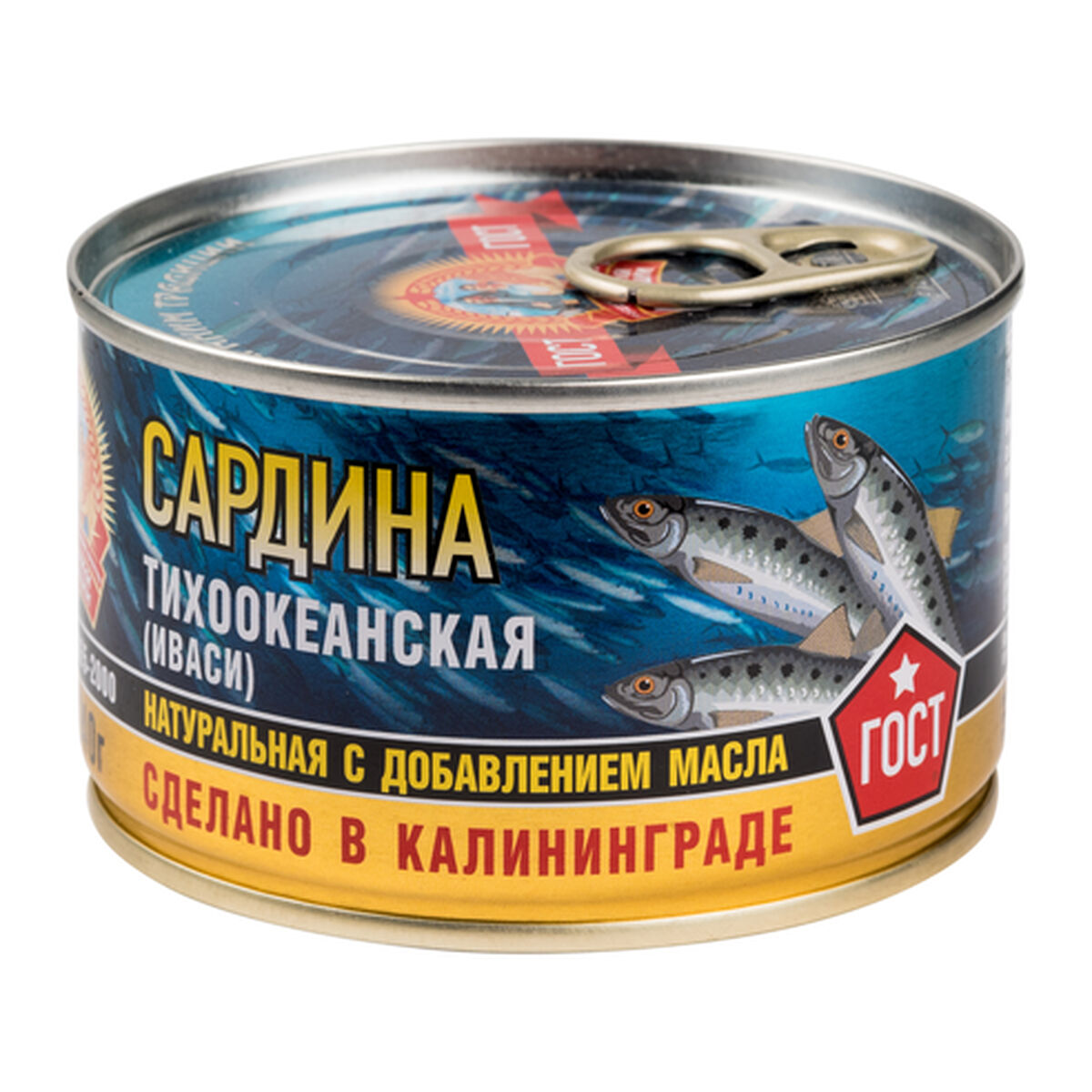 Натуральные рыбные консервы с добавлением масла, стерилизованные, куски рыбы, сардина тихоокеанская (иваси), натуральная, с добавлением масла, под торговой маркой «Сохраним традиции» произведены ООО «Сохраним традиции» в России. Образец приобретен в интернет-магазине Ozon.