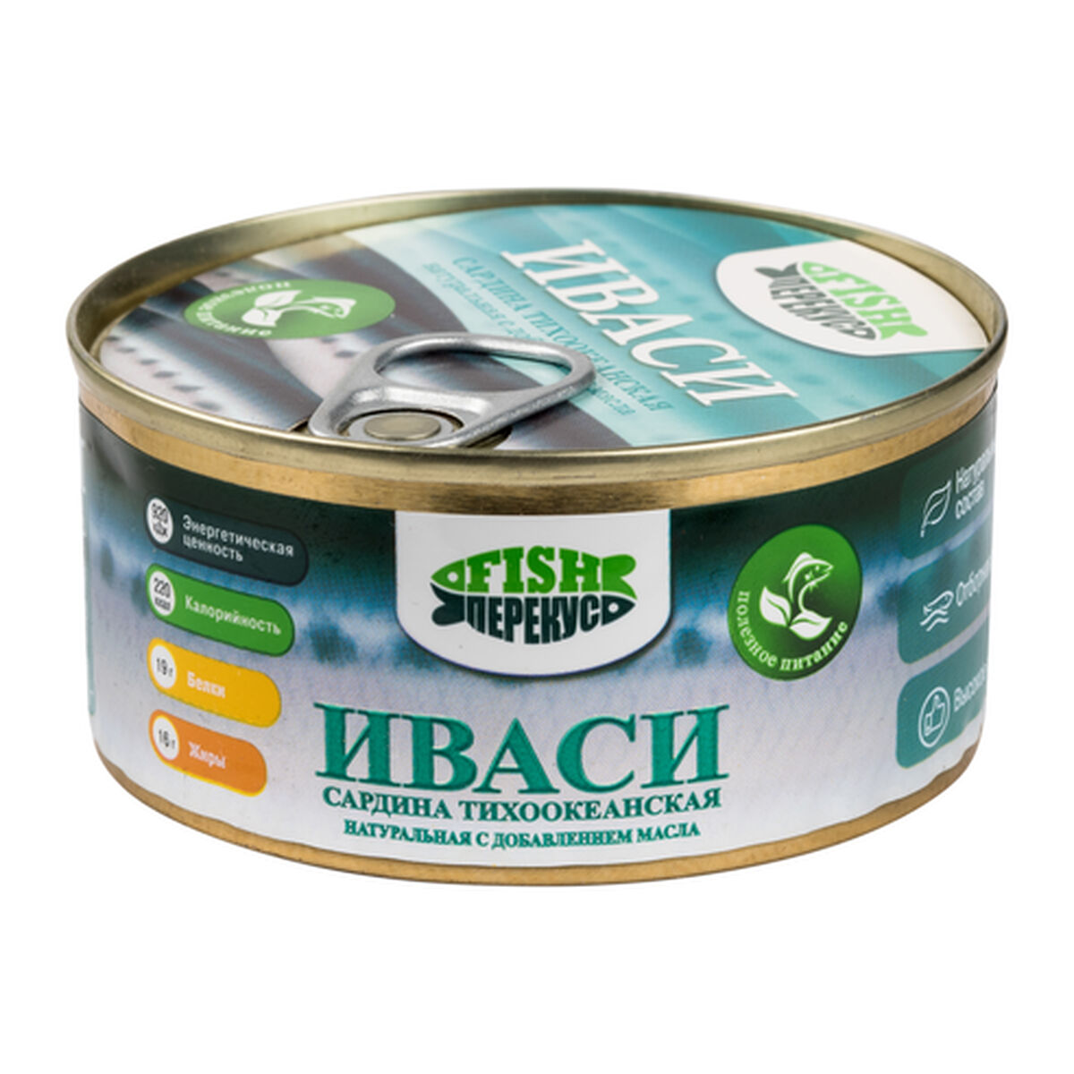 Натуральные рыбные консервы с добавлением масла, стерилизованные, сардина тихоокеанская (иваси) натуральная с добавлением масла (куски), под торговой маркой «Fish-Перекус» произведены ООО «Русский рыбный мир» в России. Образец приобретен в магазине «Лента» по адресу: г. Москва, ул. Б. Черемушкинская, д. 1.