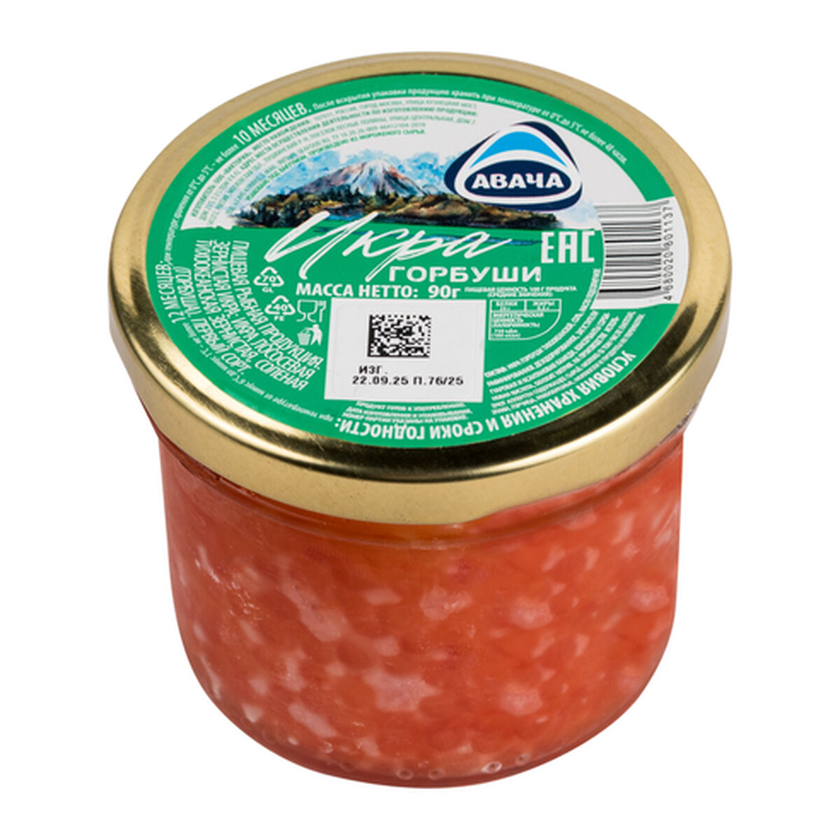 Пищевая рыбная продукция, зернистая икра: икра лососевая тихоокеанская зернистая, соленая (горбуша), первый сорт, под торговой маркой «Авача» произведена ООО «Виктория» в России. Образец приобретен в магазине «Ашан» по адресу: г. Москва, ул. Вавилова, д. 3.