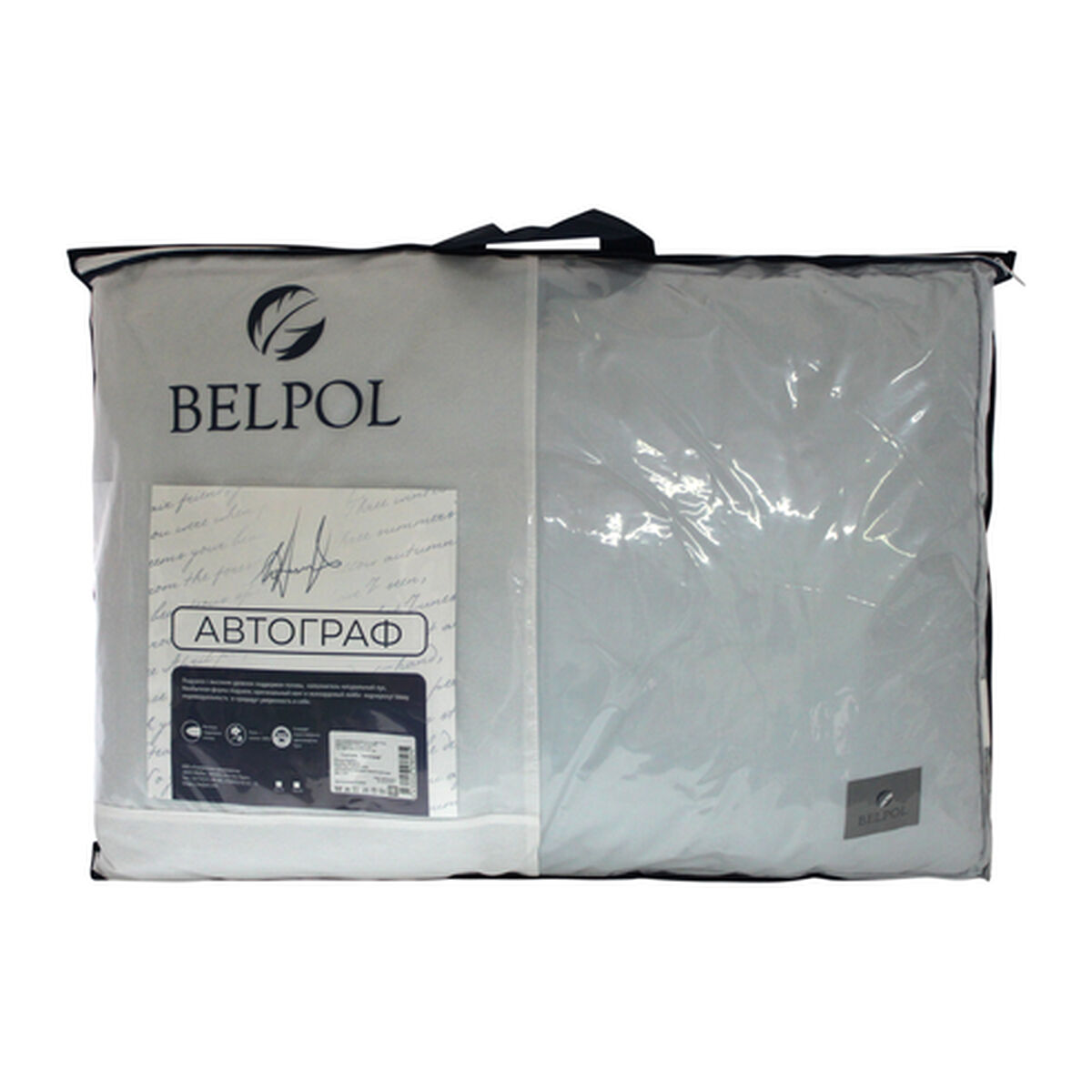 Подушка «Автограф» под торговой маркой Belpol произведена ООО «Совместное предприятие «Бел-Поль» в России. Образец приобретен в интернет-магазине belpol.ru.