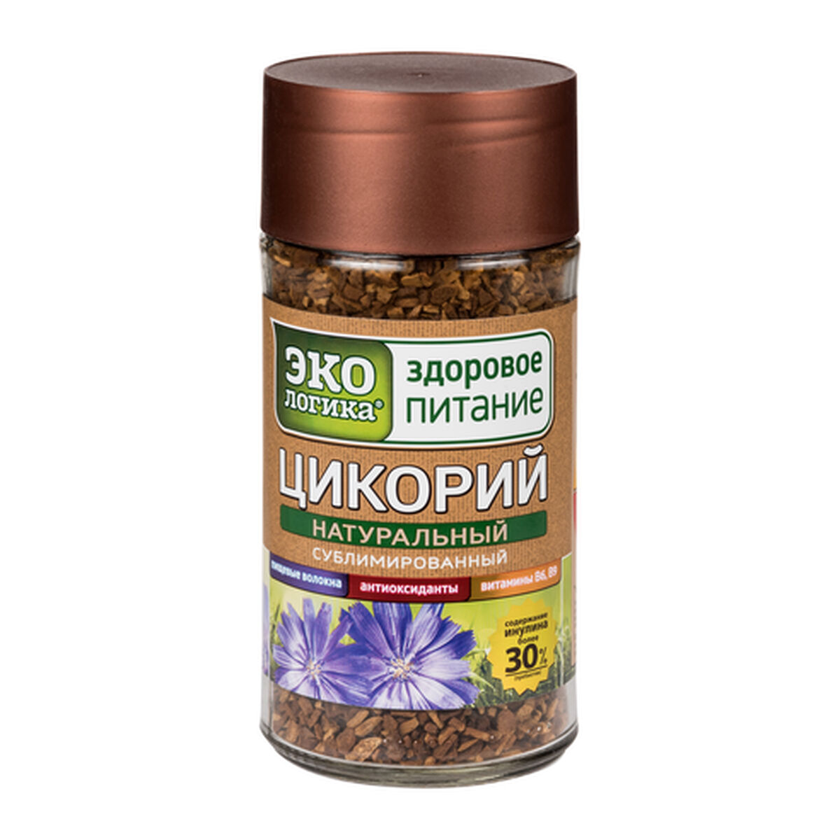 Цикорий натуральный растворимый сублимированный под торговой маркой «Экологика» произведен ЗАО «Московская кофейня на паяхъ» в России. Образец приобретен в интернет-магазине «Ашан».