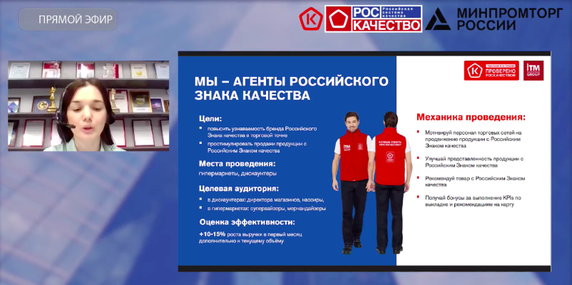 ITM Group продемонстрировала профессиональный, структурный и комплексный подход к преодолению барьеров, возникающих на пути продвижения российского Знака качества. Команда расписала путь покупателя и предложила взвешенные и практичные решения для каждого шага: от захвата внимания в различных медиаканалах до активации в местах продаж.