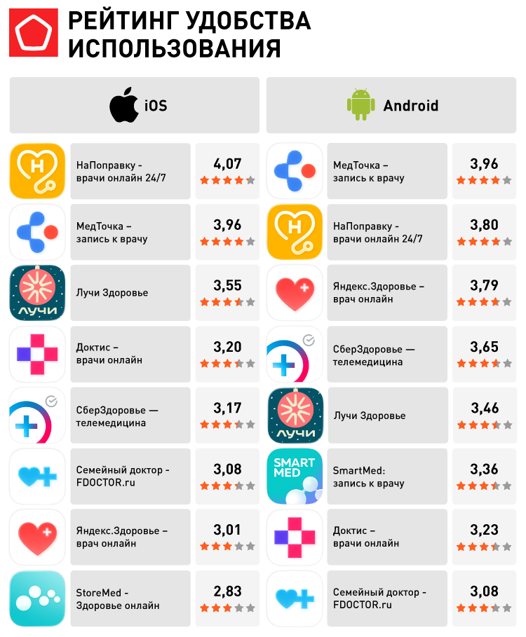 Несмотря на наличие версий в ключевых магазинах приложений, не все сервисы имеют полноценную адаптацию для планшетов. Наилучшие показатели по кроссплатформенности продемонстрировали «Семейный доктор», «МедТочка» и «НаПоправку»