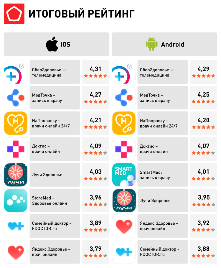В исследование также вошли приложения «К врачу» и «ЕМИАС», однако из-за их специфики (работа в рамках конкретных медицинских систем) они не включены в общий рейтинг. Результаты их тестирования, включая оценку безопасности, будут опубликованы в отдельном материале.
