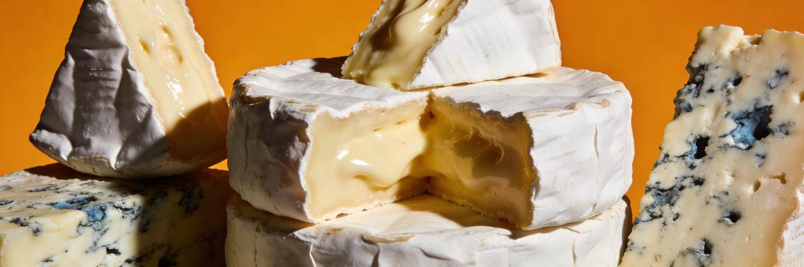 Это сыры типа камамбера, бри. При их изготовлении используют чистые культуры плесеней вида Penicillium candidum и/или Penicillium camemberti. Эти культуры развиваются на поверхности сырной головки, образуя ровный белый мицелий (такая плесень выглядит как белый пух).