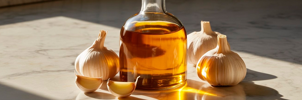 Чесночное масло — это эфирное масло, получаемое из свежих зубчиков чеснока. Оно представляет собой прозрачную или слегка желтоватую жидкость с насыщенным ароматом, обусловленным содержанием летучих серосодержащих соединений.