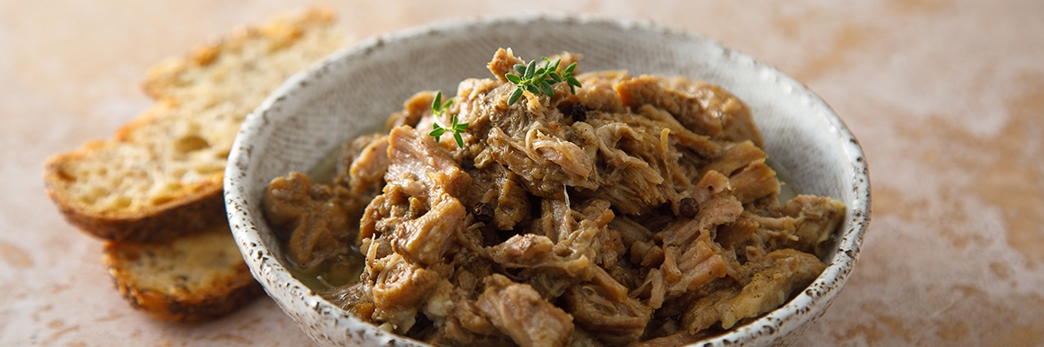 Ингредиенты: 900 г свинины с жирком, 3–4 лавровых листа, 1/2 ч. ложки соли, 6–7 горошин перца (черного, белого, розового), 3–4 горошины душистого перца, тимьян, майоран, паприка (по желанию), 50 мл воды (по желанию).