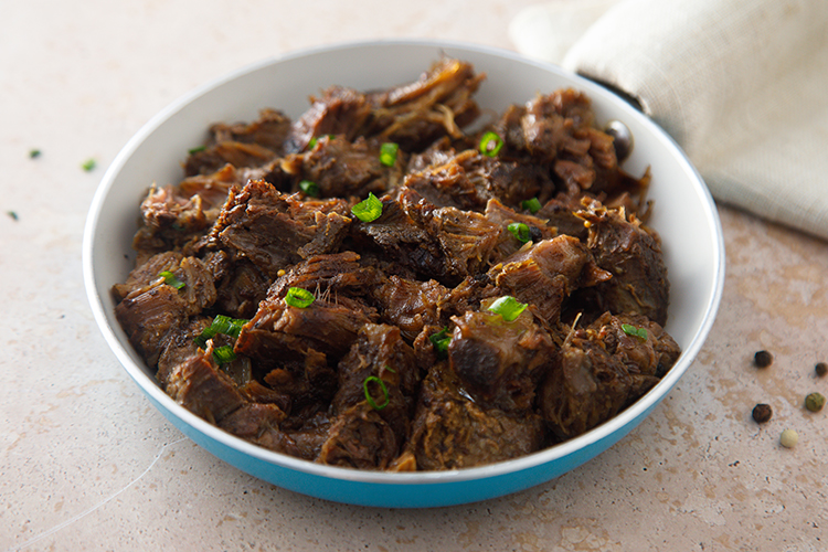 Поставить на огонь и довести до кипения. Убавить нагрев до минимума, накрыть крышкой и тушить 4–5 часов. В процессе приготовления кость можно будет удалить и разделить кусок на более мелкие.