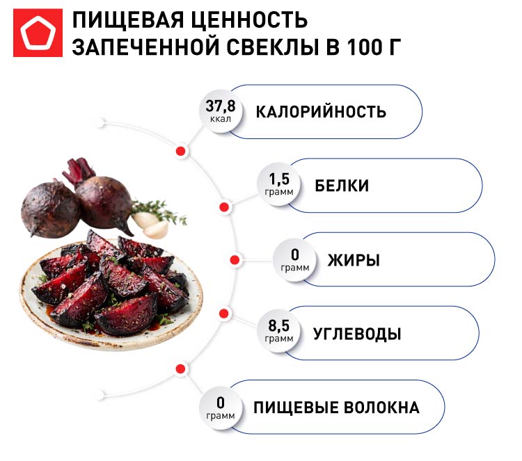 Запеченная свекла содержит больше сухого вещества, а значит, на 100 г в ней будет чуть больше сахаров по сравнению с вареной. Это не «вредные» сахара, а медленно усваиваемые углеводы.