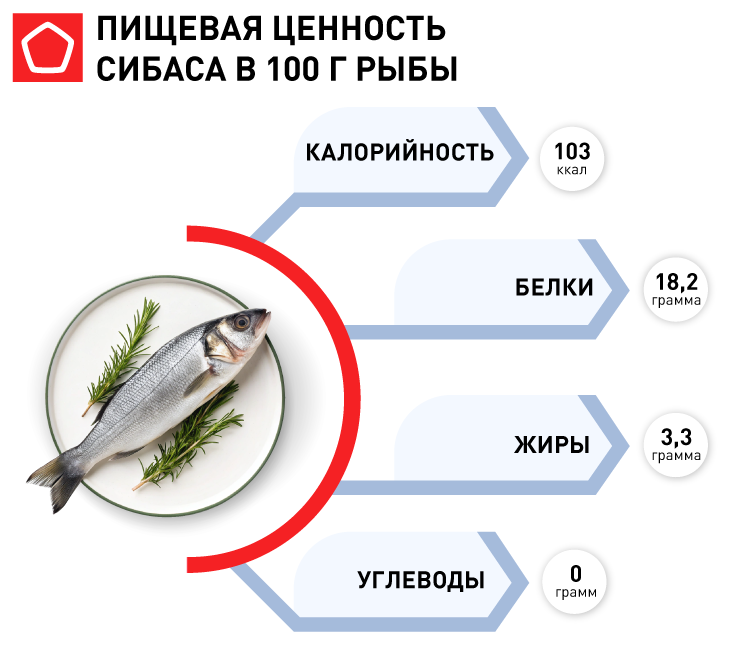 Низкая калорийность позволяет использовать сибас в диетах для снижения веса: он насыщает без перегрузки организма, поддерживает обмен веществ и помогает регулировать уровень сахара в крови.