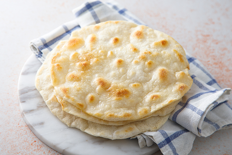 Чтобы домашние лепешки не трескались и не пересыхали, их нужно держать под влажным полотенцем и не хранить долго, идеально — приготовить и сразу съесть. Если требуется разогрев, можно слегка увлажнить лепешку водой из пульверизатора. Даже покупные после открытия упаковки стоит положить в пакет и убрать в холодильник.