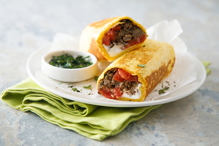 Хочется добавить сыр? Отлично, для смазывания лепешки подойдет творожный сыр. А если сыр средней или долгой выдержки, его стоит натереть и посыпать яичную смесь непосредственно перед сворачиванием.