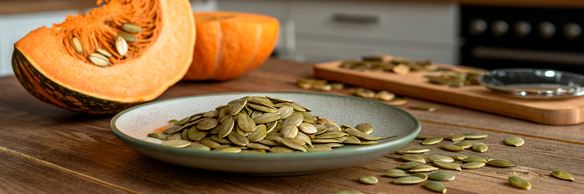 Кроме этого, тыквенные семечки добавляют в различную выпечку, например сочетая их с грецкими орехами или кешью.