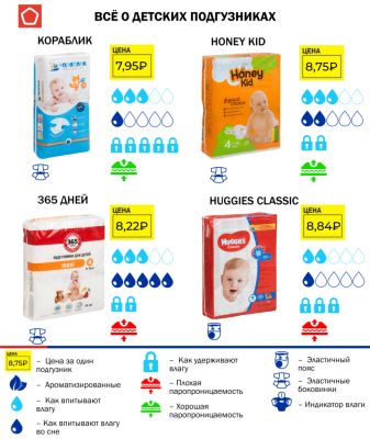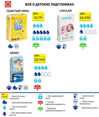 Подробные результаты испытаний подгузников читайте ЗДЕСЬ.